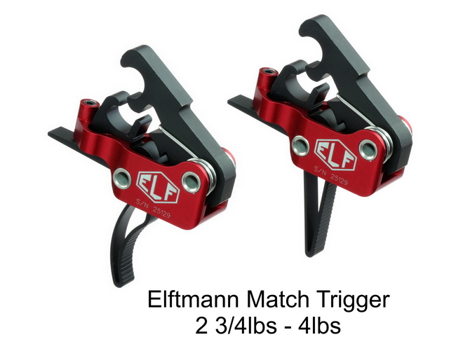 The ELF Drop-In Match Trigger has been built for performance. The only AR- 15 trigger using aerospace grade sealed bearings, making for an incredibly smooth and fast trigger pull. Pull weight is so easy to adjust it can be done in seconds without removing the trigger from your lower receiver. A second-to-none AR- 15 drop-in trigger system that is strong and light, made of wire EDM machined, hardened A2 tool steel and lightweight aircraft-grade aluminum. Installation can be done in minutes using your AR’s original hammer and trigger pins. The match trigger may be ordered with a curved or straight shoe.